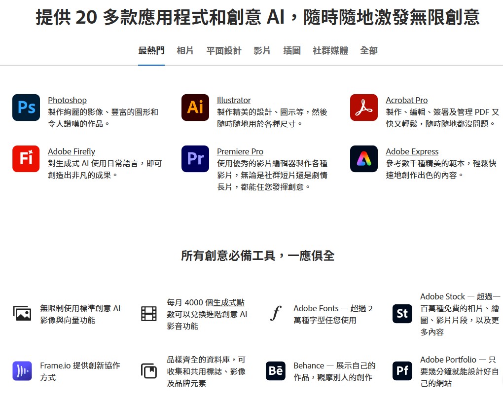 提供 20 多款應用程式和創意 AI,隨時隨地激發無限創意